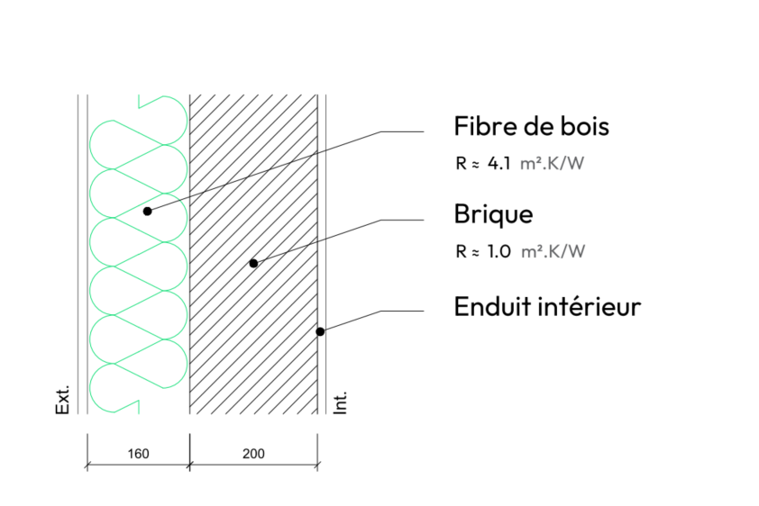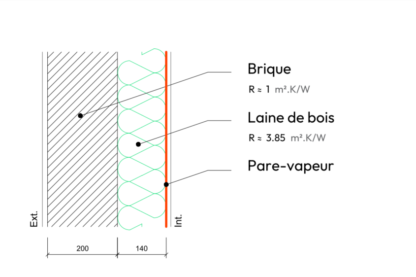 Mur Brique + laine de bois intérieure