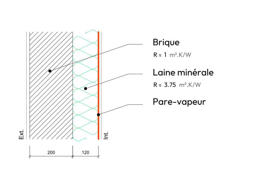 Mur Brique + laine minérale intérieure