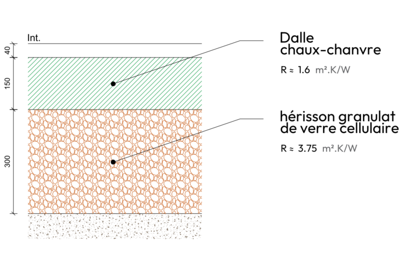 Dalle béton de chaux-chanvre + hérisson verre cellulaire