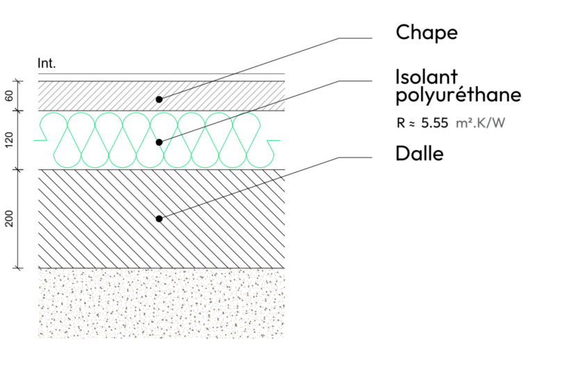 Plancher béton + polyuréthane + laine minérale