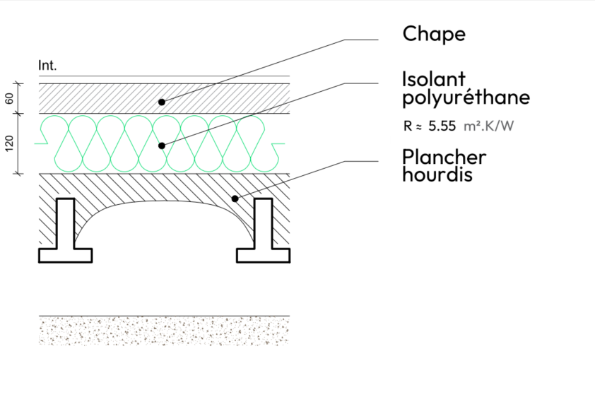 Plancher hourdis isolant + polyuréthane sous chape