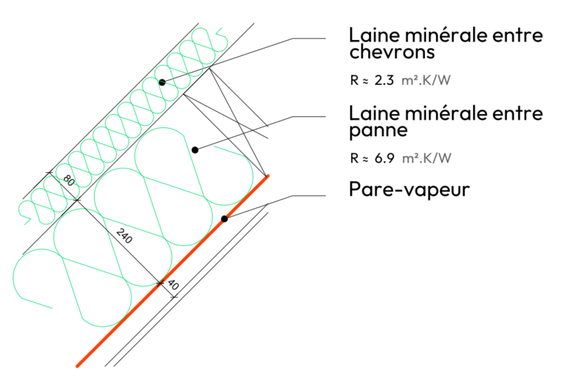 Laine minérale entre chevrons et pannes