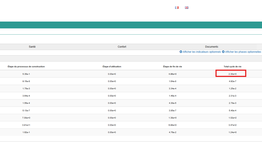 L’indicateur permettant de comparer les matériaux entre eux est le réchauffement climatique Total Cycle de vie.
