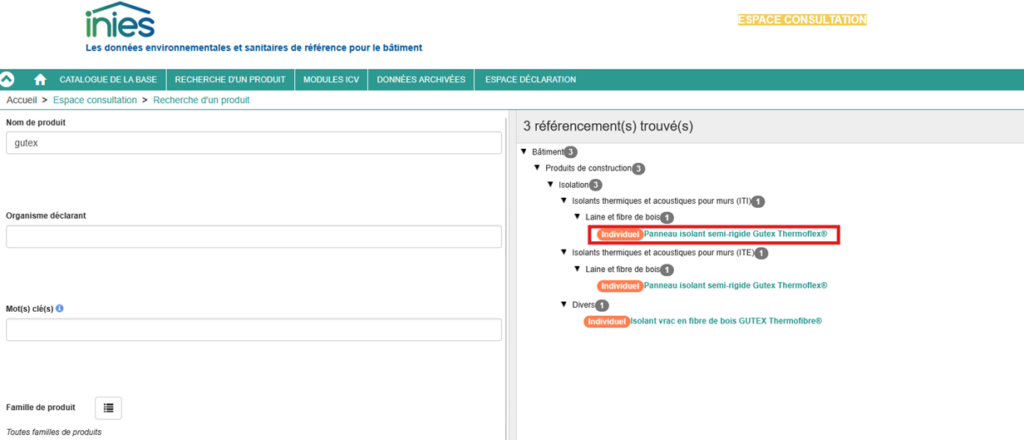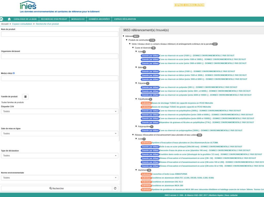La base de données INIES du CSTB permet de visualiser les performances environnementales des matériaux.